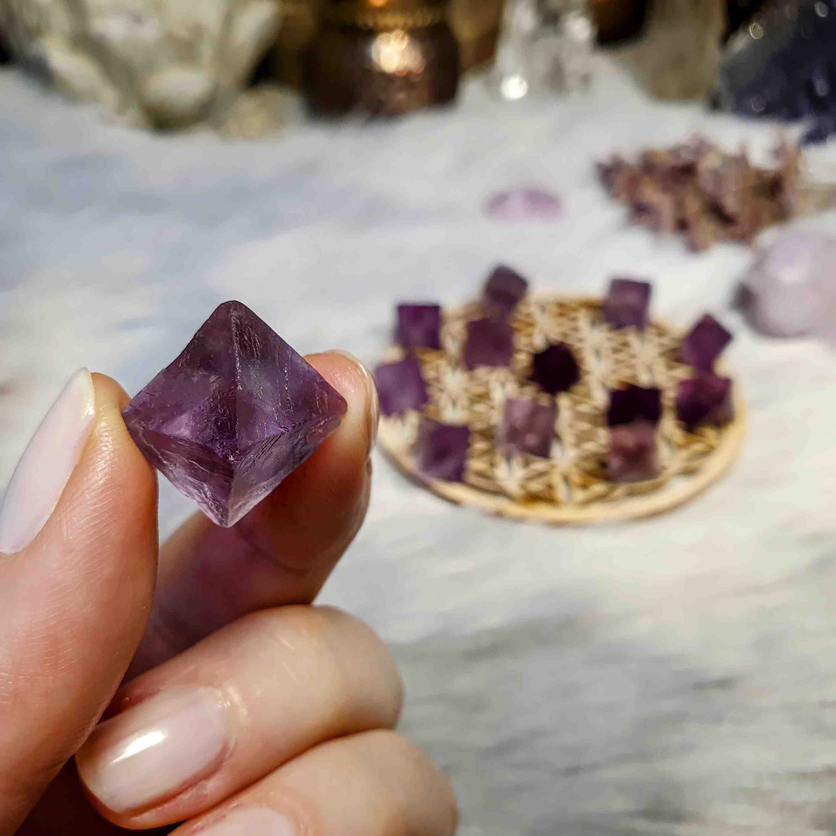 Kombinace metafyzických vlastností fluoritu a tvaru osmistěnu je skvělá pro meditaci a práci s energií.