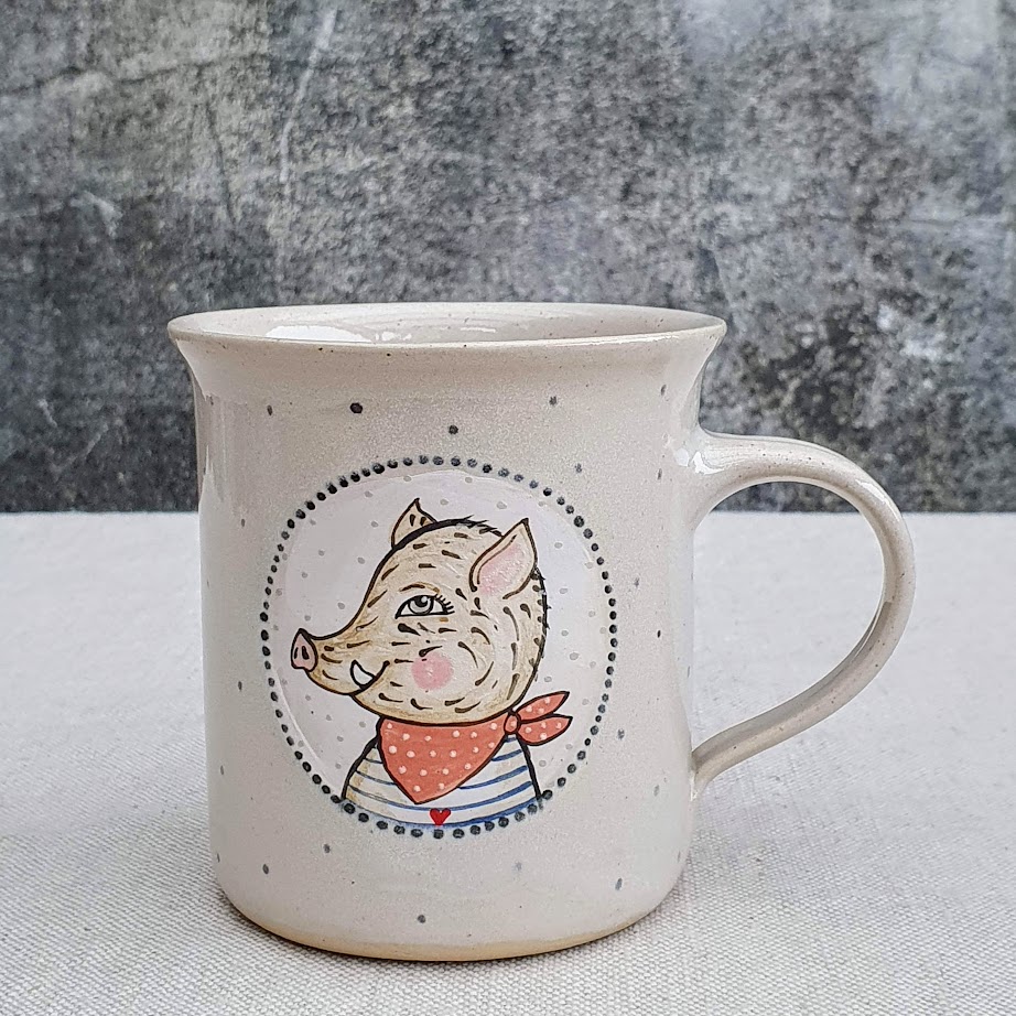 Rozverné divoké prasátko. Trochu neposedné, ale s dobrým srdcem. Rarášek z lesa, co se nezalekne ničeho - snad jen prázdného hrnku! Hrníček pro všechny, kdo rádi začínají den s úsměvem.