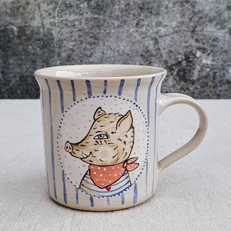 Malovaný keramický hrnek s divočákem a s pruhy 200 ml