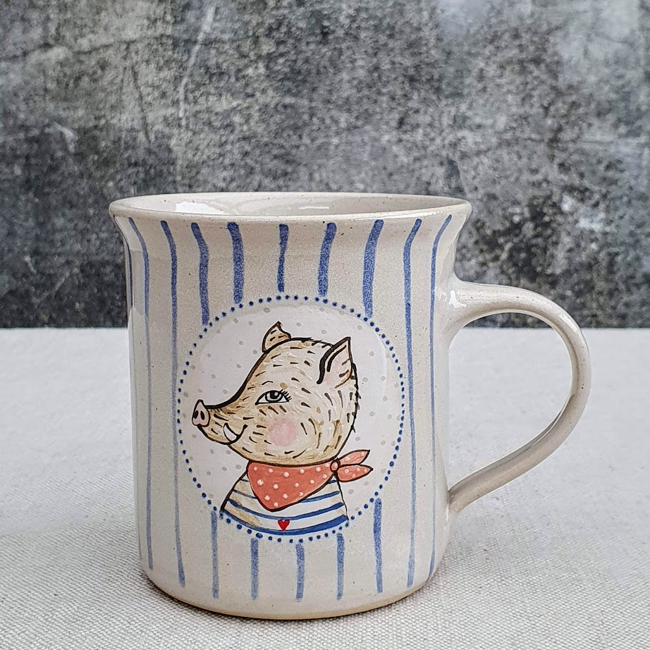 Malovaný keramický hrnek s divočákem a s pruhy 350 mlSkladem 2 ks390 Kč/ ks
