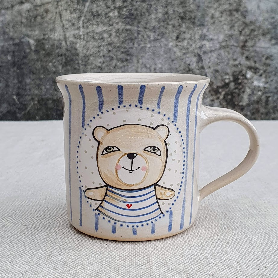 Malovaný keramický hrnek s medvídkem a s pruhy 200 mlSkladem 2 ks380 Kč/ ks