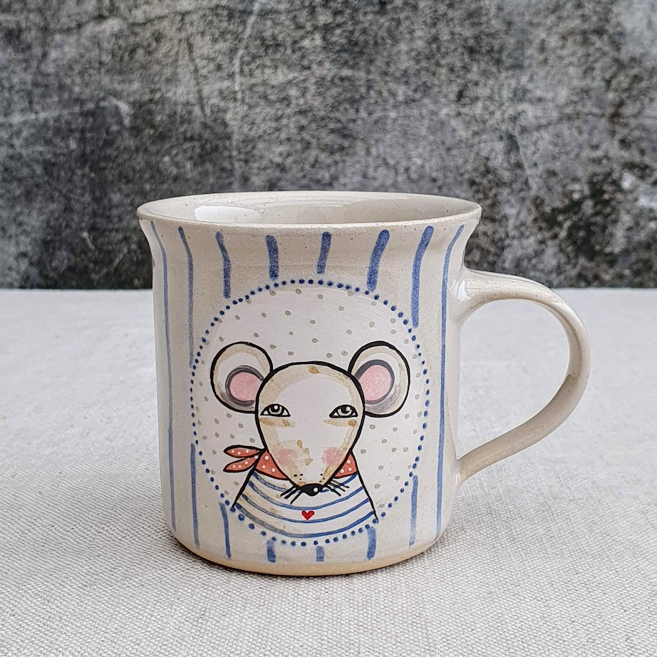 Malovaný keramický hrnek s myškou a s pruhy 200 mlSkladem 2 ks380 Kč/ ks