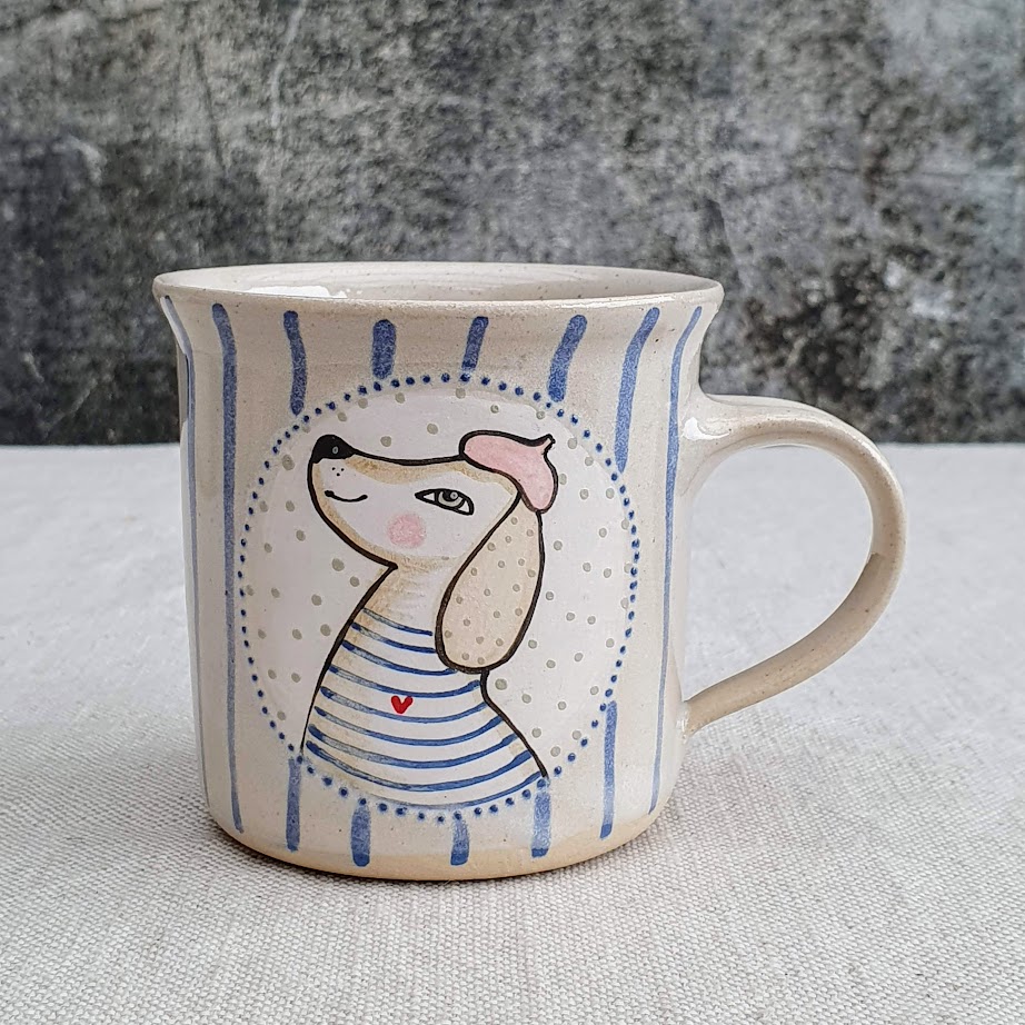 Malovaný keramický hrnek s pejskem a s pruhy 200 ml