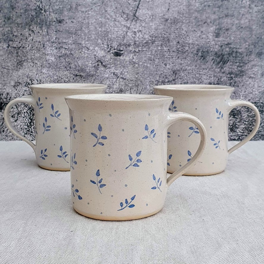 Hrníček ze světlé kameniny, malovaný v naší keramické dílně Timia, je ideální parťák na ranní kávu i večerní pohodu s čajem.