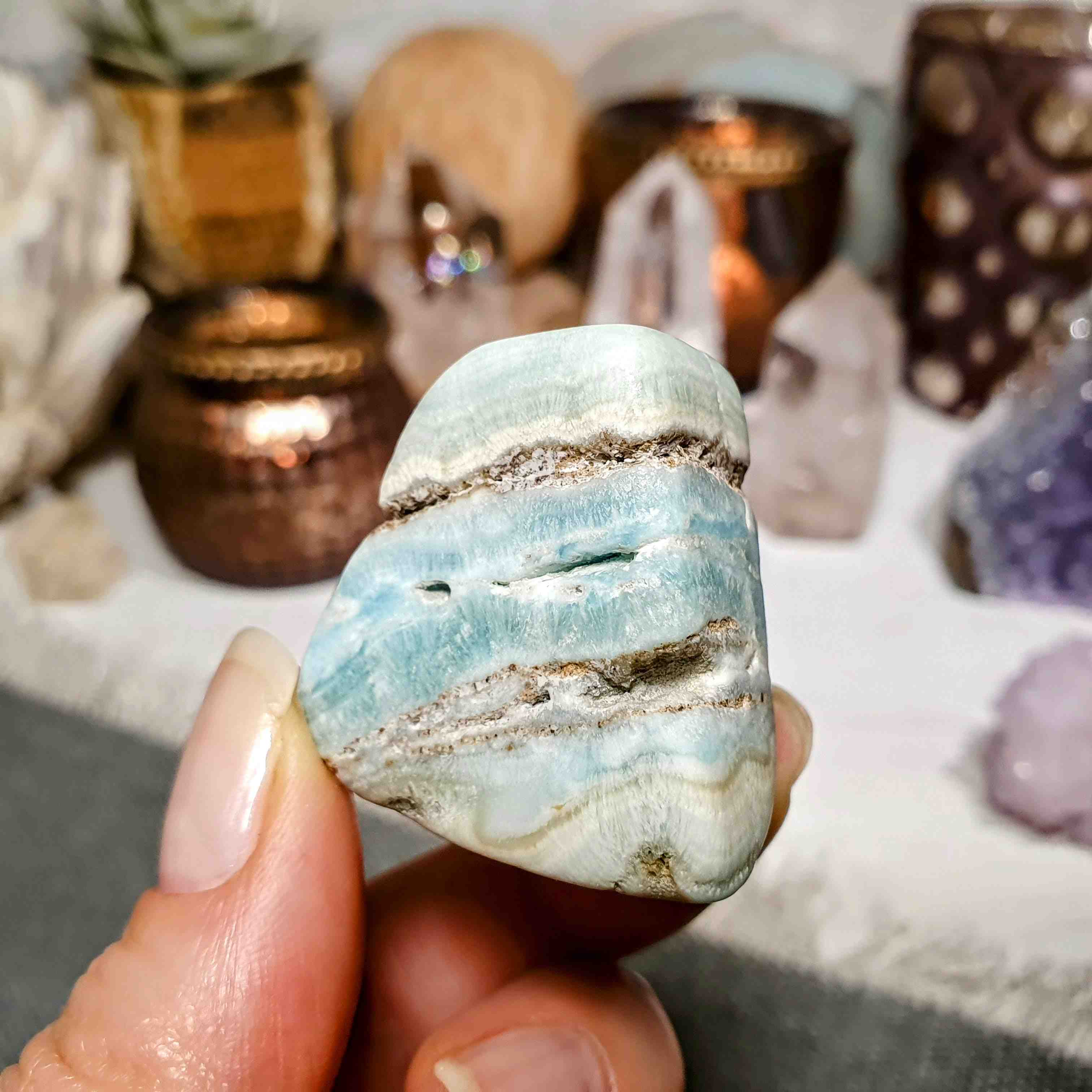 Modrý aragonit je úžasně uklidňujícím kamenem, který uklidňuje a uvolňuje emocionální tělo.