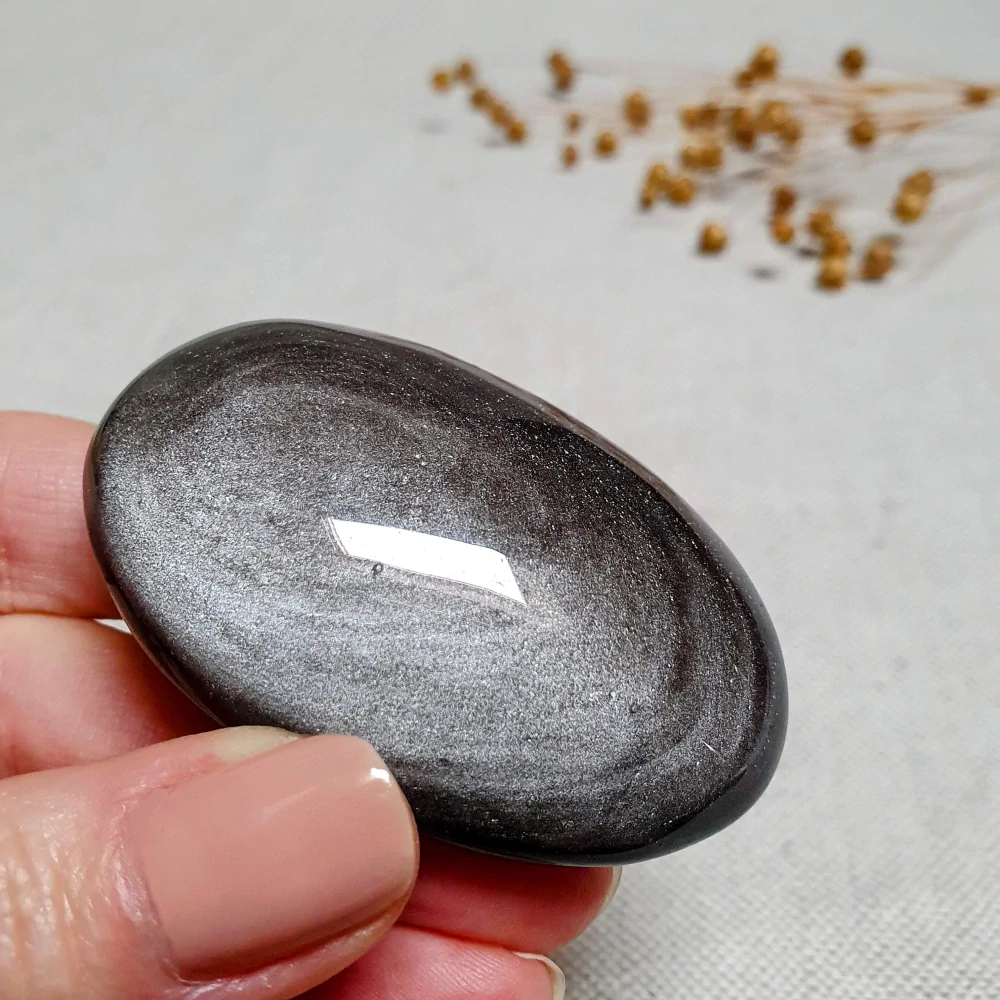 - Leštěná hmatka ze stříbrného obsidiánu může být také vaším kontaktním kamenem, který vám bude předávat svou silnou ochrannou a očistnou energii, kdykoli ho budete držet ve své dlani...♡