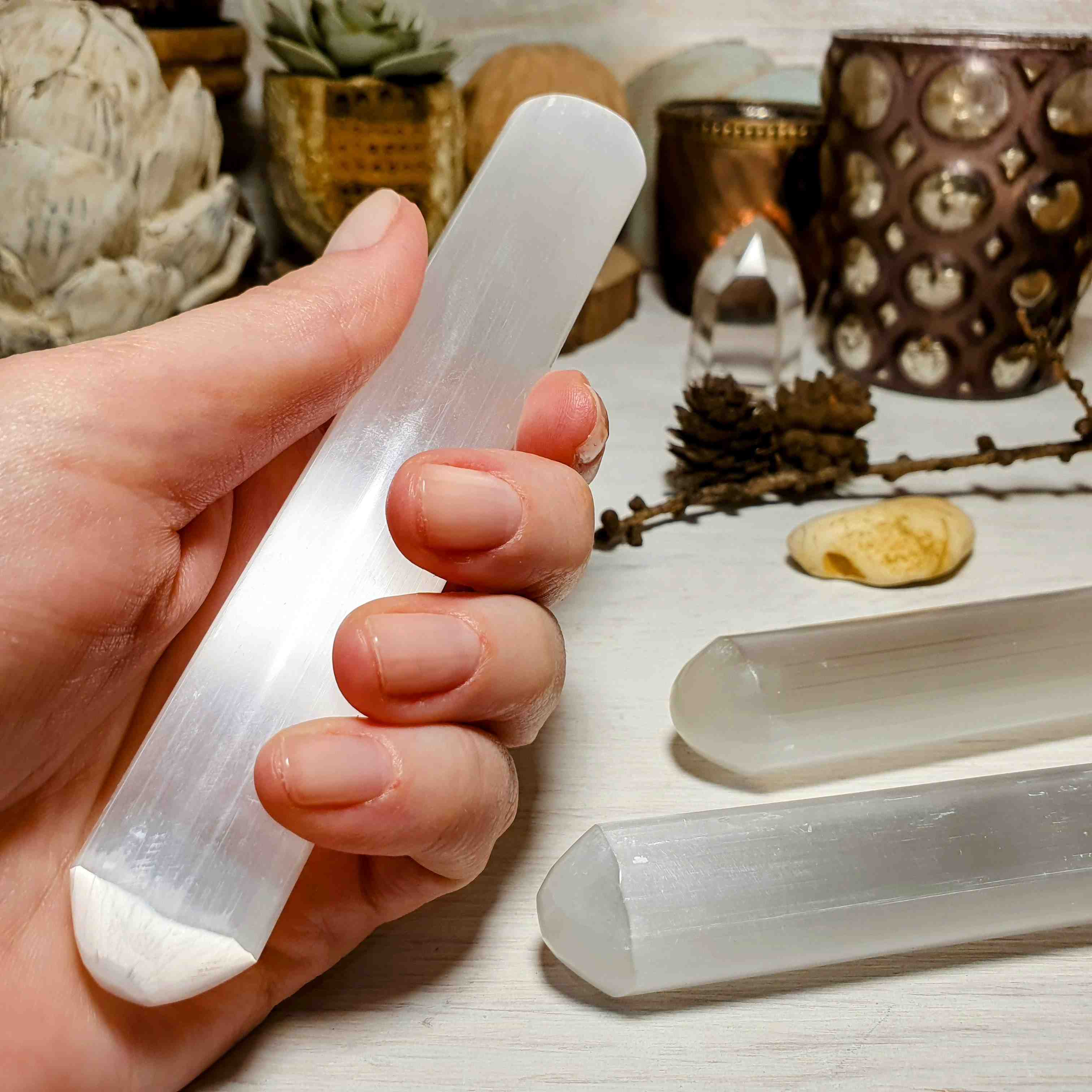 - Vybereme vám intuitivně jednu selenitovou hůlku
